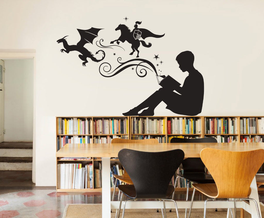 Boy Reading Magic Book Wall Decal